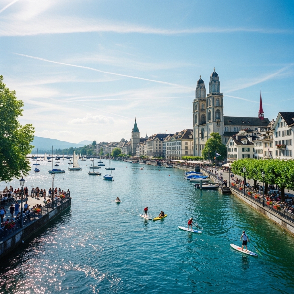 취리히는 스위스 최대 도시이자 금융 중심지로 알려진 도시입니다. 취리히 호수와 림마트 강이 어우러져 도시 풍경이 매우 아름답습니다. 구시가지(알트슈타트)에는 중세 건물과 좁은 골목이 이어져 있습니다. 그로스뮌스터와 프라우뮌스터 성당은 도시를 대표하는 역사적 건축물입니다. 호수 주변 산책로에서는 알프스 방향 풍경을 감상할 수 있습니다. 금융 도시이지만 문화와 예술 공간도 풍부한 편입니다. 트램이 도시 곳곳을 연결해 이동이 편리합니다. 주변에는 알프스와 호수가 가까워 자연 풍경이 뛰어납니다. 깨끗하고 정돈된 도시 분위기도 취리히의 특징입니다. 전반적으로 자연과 금융 중심 도시의 분위기가 함께 어우러진 스위스 대표 도시입니다.