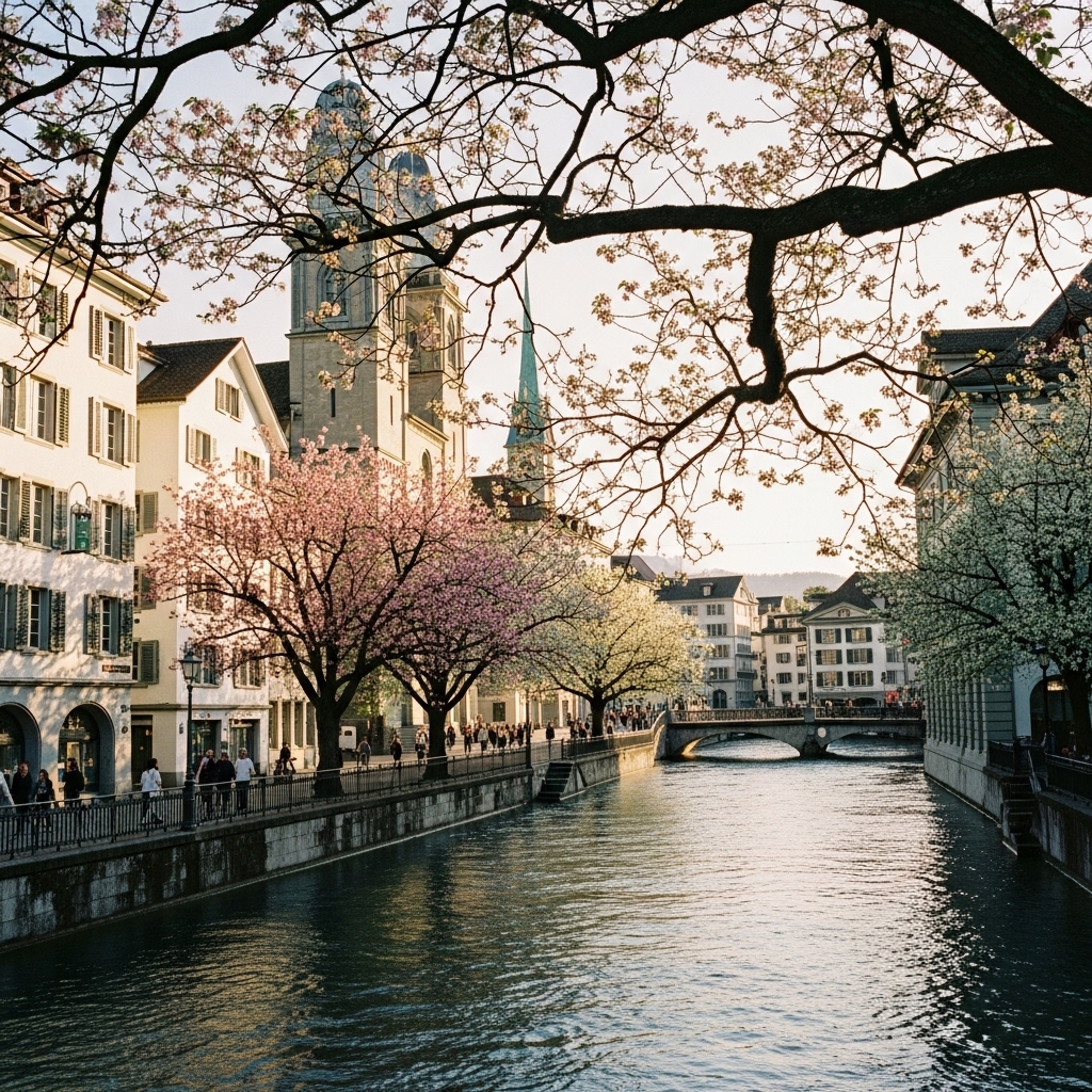 호수 주변은 바람이 조금 더 시원하게 느껴질 수 있습니다. 일교차는 계절에 따라 비교적 크게 나타날 수 있습니다. 여름에는 간헐적인 소나기가 나타나기도 합니다. 겨울에는 흐린 날이 이어질 수 있습니다. 봄과 가을은 여행하기 좋은 시기로 자주 언급됩니다. 취리히의 날씨는 알프스 인접 지역 특유의 온대 대륙성 기후가 특징입니다.